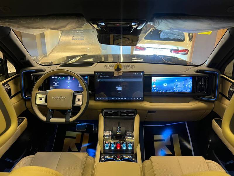 BYD Leopard 5 Ultra 2025 zero Fully loaded Plugin hybrid 1.5L turbo chargered Dual Electric Motors 1,200 KM Range 680 horsepower 720 NM Torque سقف بانوراما كراسي تسخين و تبريد و مساج كراسي كهرباء بالكامل ثلاجة تسخين و تبريد 18 سماعة جنوط 20 انش Smart drive Parking assistant 3 screens السعر :3.000.000
