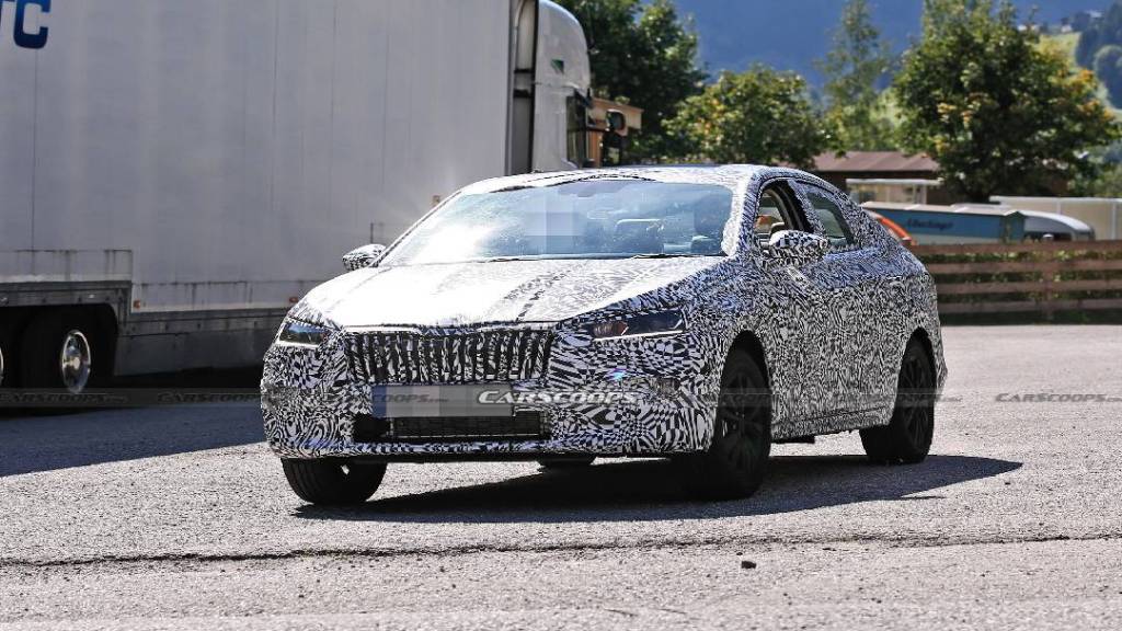 سكودا سلافيا موديل 2022 تظهر بغطاء مموه على حلبة الاختبار بالصور...