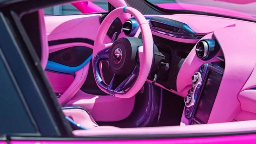 كان لسيارة ماكلارين 765LT باللون الوردي لمسات داخلية تعتمد على هذا اللون ، وكان ذلك واضحًا من خلال مقاعد السيارة ذات الطراز الرياضي ، بالإضافة إلى التفاف عجلة القيادة في السيارة مع قنصل السيارة أيضًا ، بالإضافة إلى الأرضيات ومقابض اليد الداخلية.