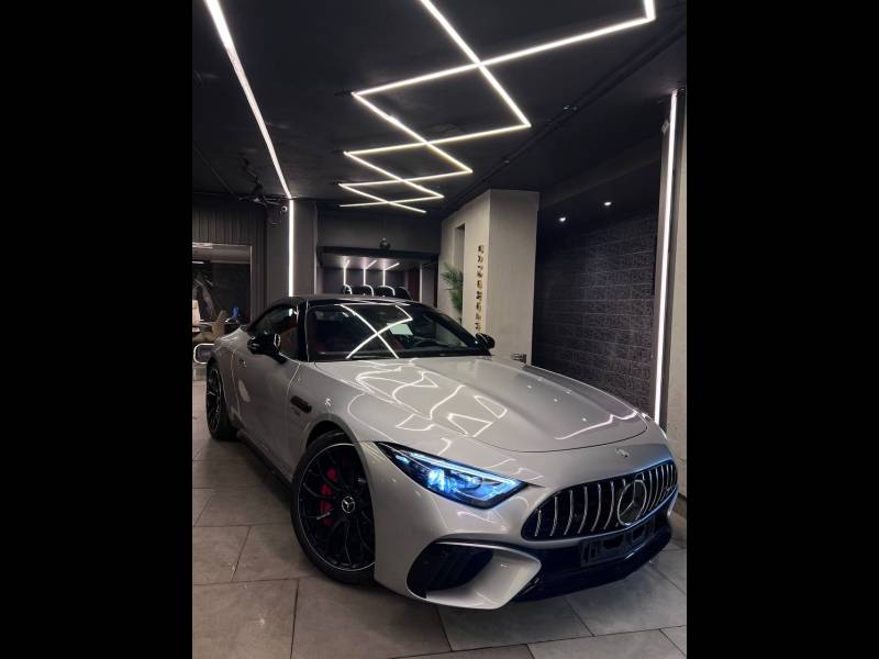 Mercedes SL55 AMG Model 2024 Zero وكيييييل لون فضي فرش احمر 4000cc V8 BITURBO 4-MATIC 469 حصان كامله المواصفات كراسي AMG كهرباء ميموري مساج تسخين تبريد سمعات برومستر كاميرا ٣٦٠ ردار هيد اب ديسبلاي دخول و خروج ذكي السعر 11,250,000