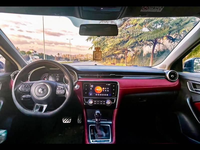 MG 6 Luxury Red interior موديل 2022 أعلي فئة لاكشيري فرش احمر فابريكا بالكامل رخصة 3 سنة صيانات توكيل بالكامل وما زالت داخل الضمان بالكتالوجات والمفتاح الاسبير بصمة داخلية وخارجية - فتحة سقف - طارة مالتي كاملة - جنوط اسبور - مثبت سرعة ومحدد سرعة - شيفتات طارة لنظام الاسبورت - مريات ضم - تكييف امامي وخلفي - كراسي كهربا - نظام اوتوهولد - نظام ابل كار بلاي واندرويد اوتو - نظامABS وتوزيع فرامل إليكتروني EBD وحساسات