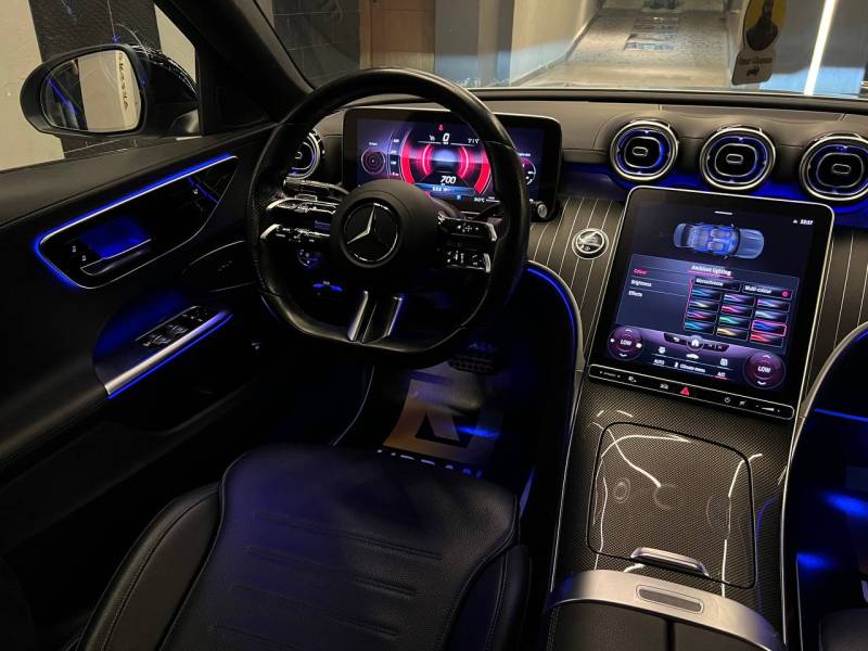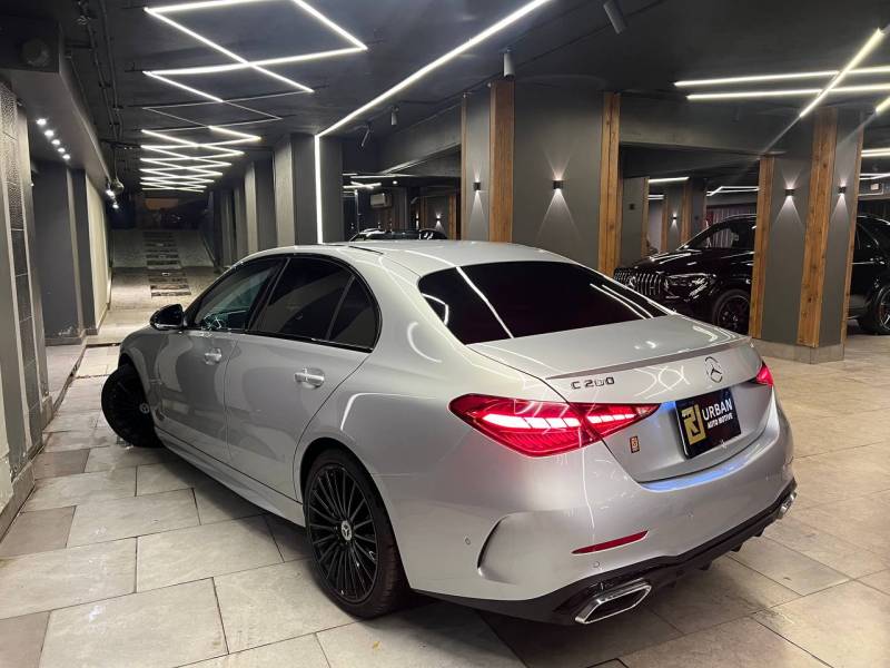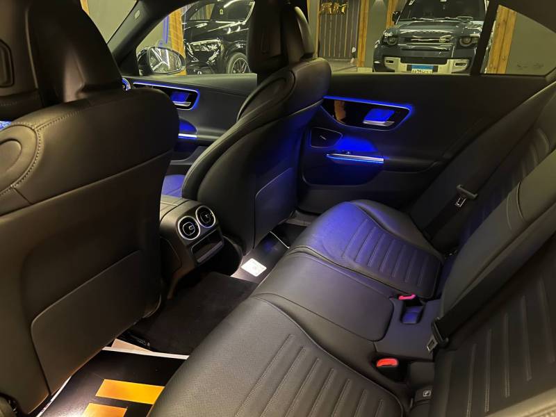 Mercedes C200 AMG Night package IMPORTED GERMANY Model 2022 طبقه حمايه بالكامل رخصه ٢ سنه 38,000km كراسي جلد كراسي نص كهرباء فوانيس ليد هاي بيرفورمنس جنوط ١٩ انش نقط عمياء امباينت ليت بلس تكيف دول زون كاميرا خلفيه ٣٦٠ سينسور السعر 2,850,000
